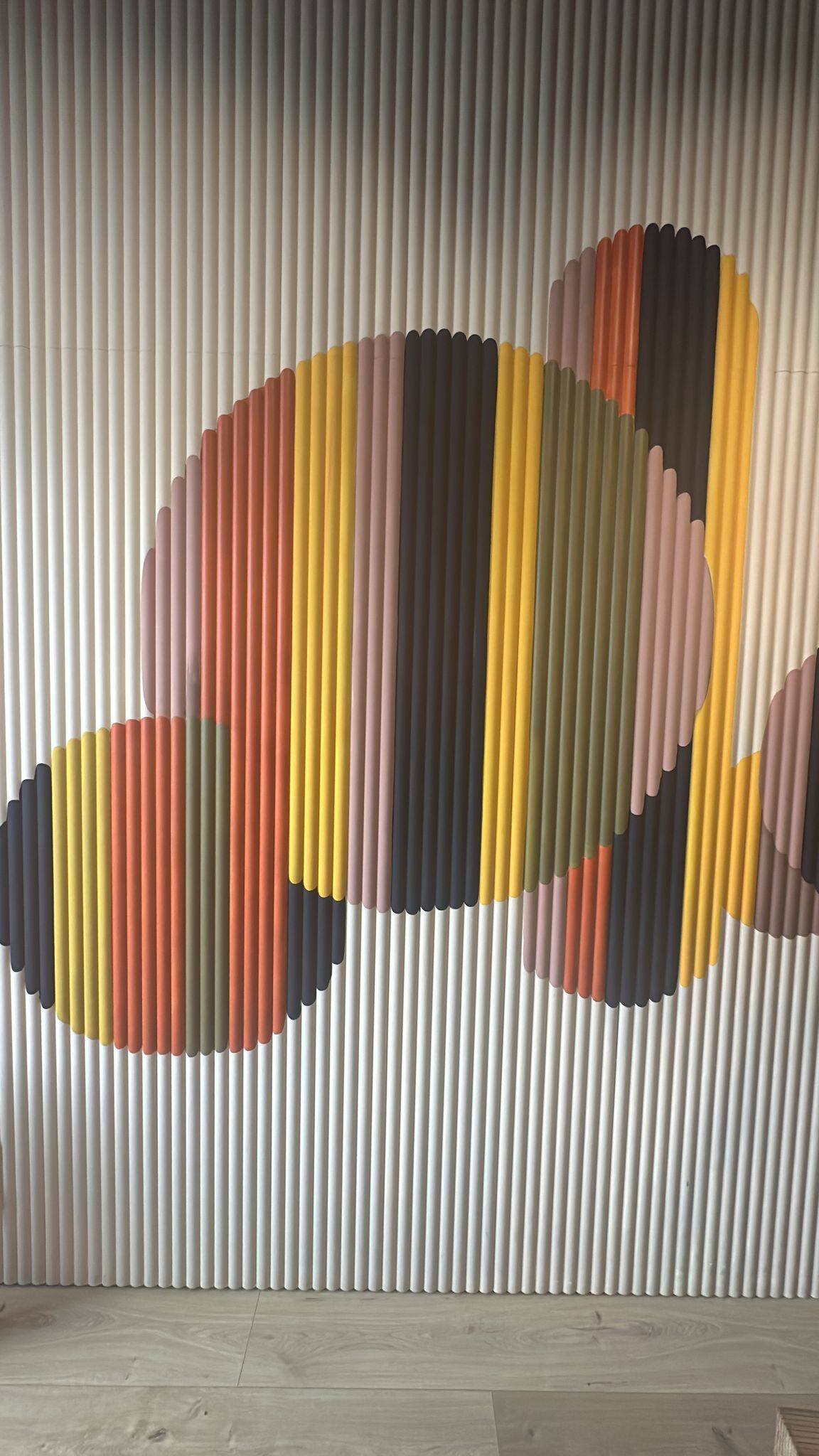 J’ai travaillé avec ma collègue peintre Alice Laroche sur cette commande pour la Terrible Agence : création d’un décor mural qui apporte du mouvement, de la texture et de la couleur sur un grand panneau d’orac.
